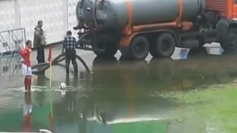 Vodné pólo alebo futbal? Je asi správna otázka... Keď sa spojí silný dážď s podmáčaným terénom a zlyhá aj technika, futbal zachádza až do takýchto absurdností.