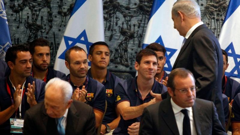 Hráčov španielskeho veľkoklubu privítal v nedeľu prezident Šimon Peres a premiér Benjamin Netanjahu v rámci dvojdňového "Mierového turné" Barcelony na Blízkom východe.