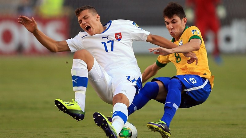 V prvom polčase inkasovali mladí Slováci trikrát; dva góly Juhoameričanov dal útočník Mosquito, pričom druhýkrát skóroval z pokutového kopu a skóre prvej štyridsaťpäťminútovky uzavrel v nadstavenom čase Nathan. Po zmene strán sa v rozpätí štyroch minút presadili Nathan a Caio Rangel, v 68. min strelil jediný gól Slovenska stopér Denis Vavro. Skóre stretnutia uzavrel Mosquito, ktorý v 70. min gólom na 6:1 zavŕšil svoj hetrik. Štvrťhodinu pred koncom prišli Slováci o obrancu Vavra, ktorý po zranení opustil trávnik na nosidlách.