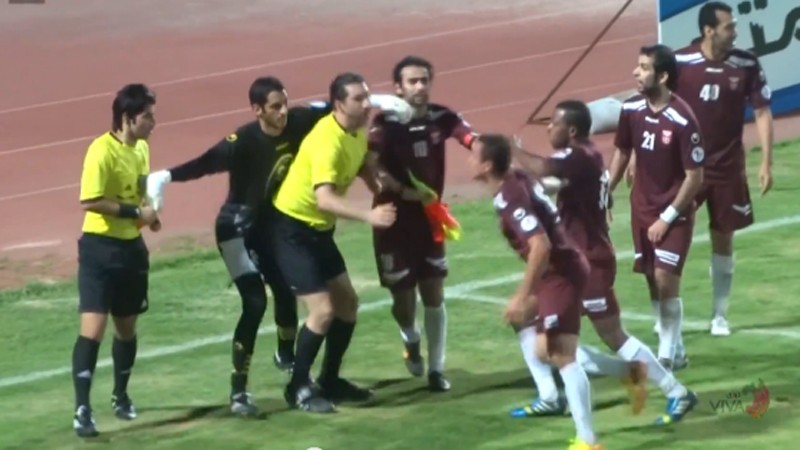 V zápase domácej súťaže tímov Alnaseru a Alarabia rozhodca odpískal diskutabilný pokutový kop, no to radšej mal pichnúť do osieho hniezda...