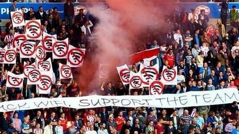 EINDHOVEN / Fanúšikovia holandského futbalového klubu PSV Eindhoven ostro protestovali proti zavedeniu bezdrôtového Wi-Fi pripojenia na internet v domovskom stánku.