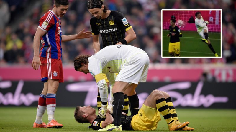 Akcia Bayernu skončila neúspechom, loptu mal v držaní brankár Dortmundu. Miesto rýchleho založenia akcie ale Weidenfeller skoro "prizabil" vlastného spoluhráča. To keď tvrdým výkopom napálil priamo Henrika Mchitarjana zozadu do hlavy. Arménsky futbalista, ktorý niečo podobné samozrejme v ani najmenšom nemohol očakávať, sa okamžite zvalil na zem. A k hrôze všetkých prítomných na ňej zostal nehybne ležať.