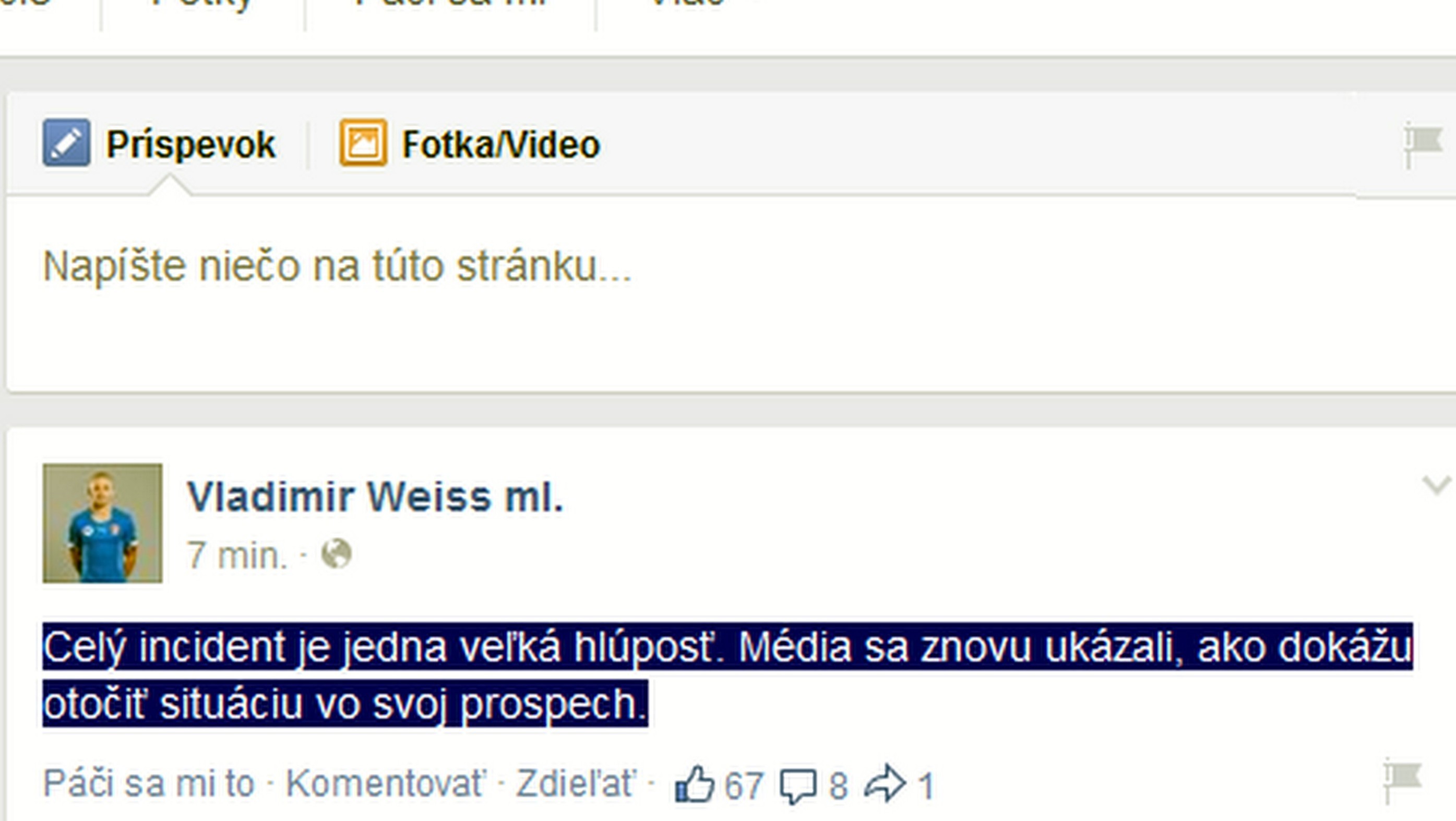Futbalista sa vyjadril aj na svojom profile na sociálnej sieti facebook. "Celý incident je jedna veľká hlúposť. Média sa znovu ukázali, ako dokážu otočiť situáciu vo svoj prospech," uviedol.