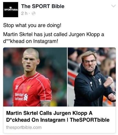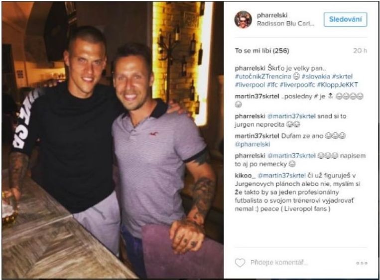 "Posledný # je top," napísal Škrtel (podľa vlastného dodatočného tvrdenia to bolo v zastúpení) v debate na instagrame na konte "pharrelski" v bezprostrednej reakcii na príspevok "Škrťo je veľký pán" sprevádzaný spoločnou fotografiou a množstvom hashtagov. Ten kvitovaný posledný pritom mal podobu "#KloppJeKKT". Obranca dostal odpoveď: "Snáď si to Jürgen neprečíta." Škrtel odvetil: "Dúfam, že áno." Pridal tri smajlíky. Instagramový účet "martin37skrtel" je verifikovaný ako futbalistov oficiálny.