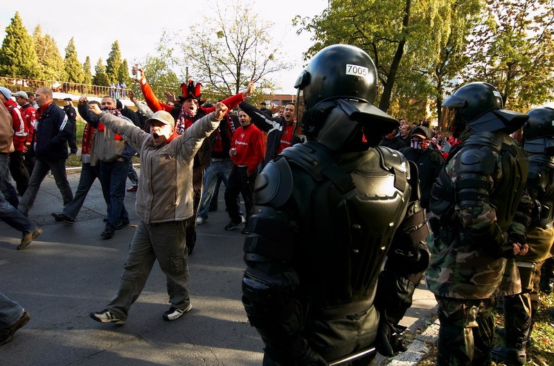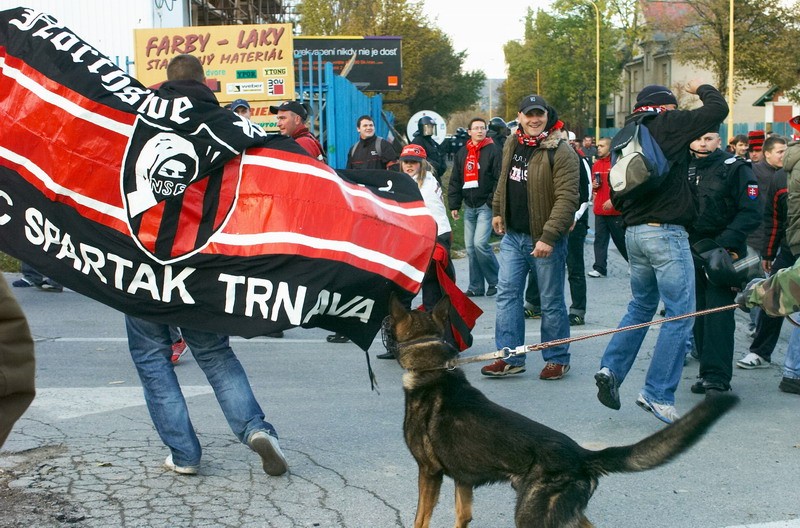 Trnavskí fanúšikovia, ktorí si na dnešný futbalový zápas 13. kola futbalovej Corgoň ligy v Košiciach objednali mimoriadny vlak, už opustili metropolu východu. Pod dohľadom policajtov, kukláčov a za prítomnosti policajných psov nastúpili do vlaku bez vážnejších incidentov. Cestou zo štadióna na stanicu policajti museli zakročiť proti niekoľkým, ktorí hádzali kamene.