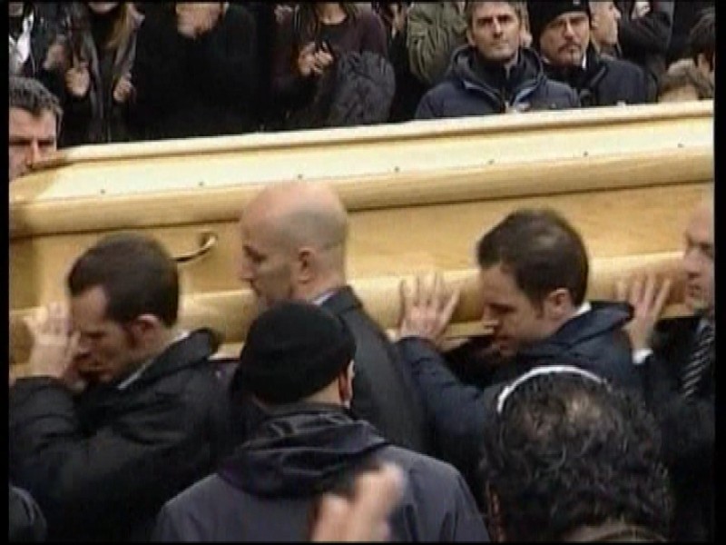 Aplauz sa ozval pri príchode hráčov Lazia sprevádzaných starostom "večného mesta" Walterom Veltronim a ministrom pre miestny rozvoj Antoniom Di Pietrom. Prvý muž radnice objal Sandriho najbližších príbuzných, kým rozšíril zástup smútočných hostí. "Policajtov výstrel bol nešťastnou náhodou, s ktorou futbal nemá nič spoločné," povedal jeden zo Sandriho stredoškolských spolužiakov počas pohrebu. Minister vnútra Giuliano Amato označil výstrel za "tragickú chybu".