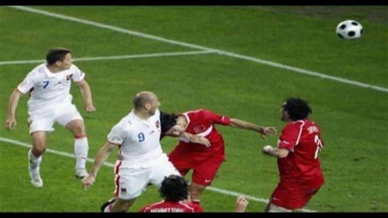 Aktívnejšie začali Česi, ktorí hrozili najmä zo štandardných situácií po nedovolených zákrokoch nervóznych hráčov súpera. V 11. min po jednom z viacerých priamych kopov hlavičkoval Koller nad tureckú bránku. Na opačnej strane pohrozil v 17. min Tuncay Sanli, ale jeho strela z 20 m išla vedľa Čechovej svätyne.