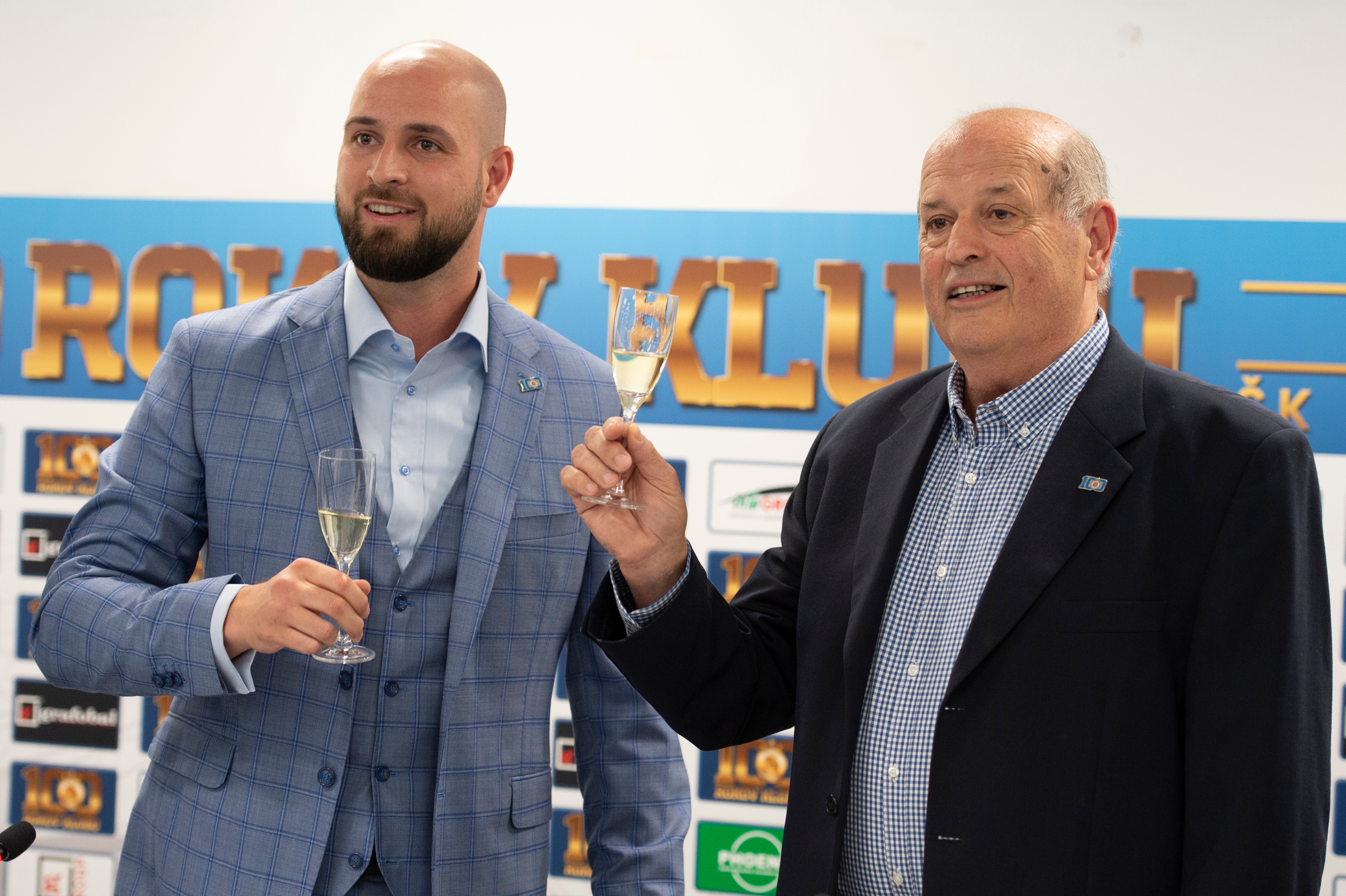 Generálny riaditeľ ŠK Slovan Ivan Kmotrík ml. a legendárny športový brankár Alexander Vencel st.