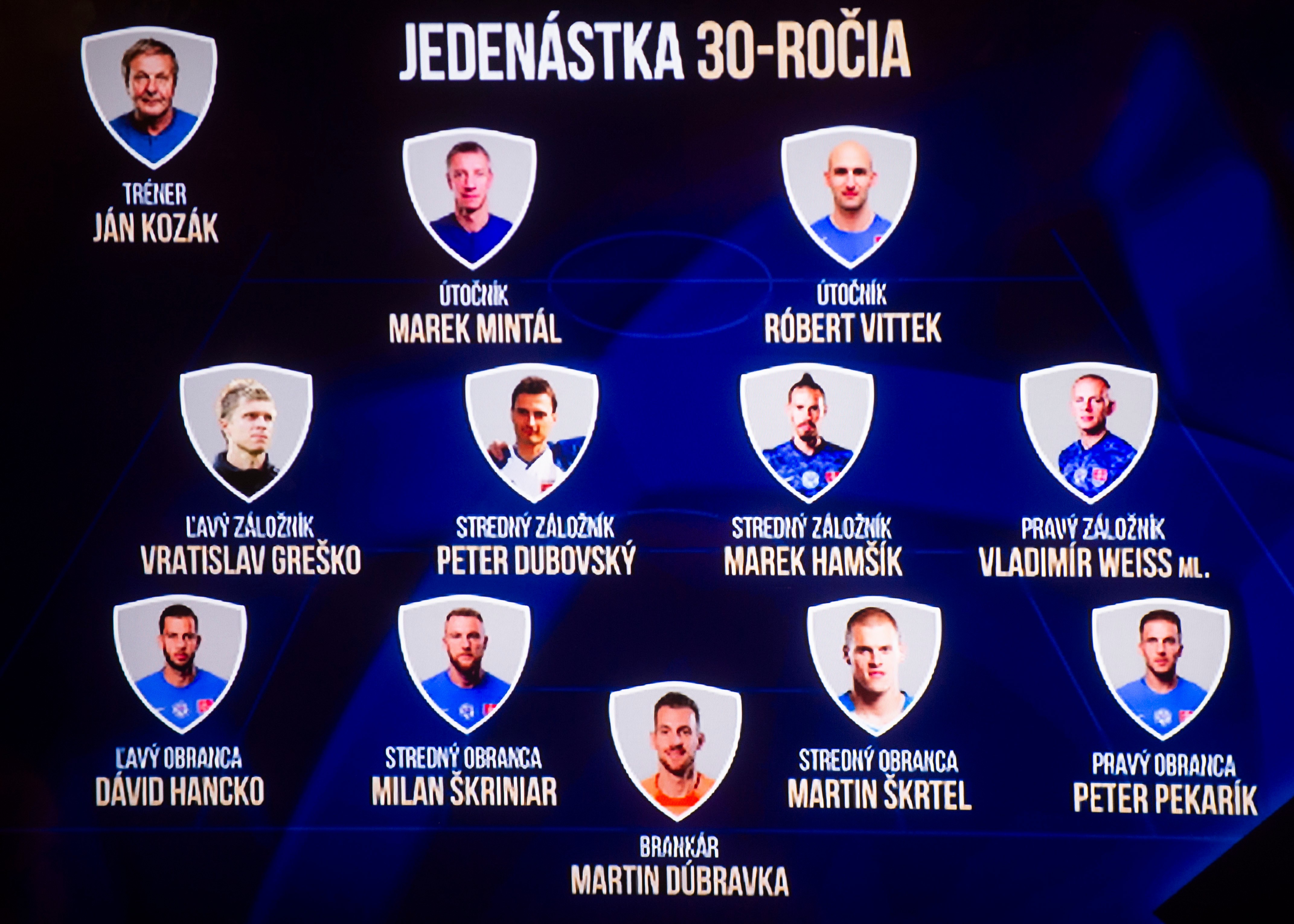 Výsledky ankety Jedenástka 30-ročia (rozostavenie 4-4-2): Martin Dúbravka - Peter Pekarík, Martin Škrtel, Milan Škriniar, Dávid Hancko - Vladimír Weiss ml., Marek Hamšík, Peter Dubovský, Vratislav Greško - Róbert Vittek, Marek Mintál. Tréner: Ján Kozák