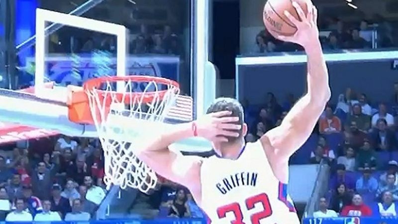 Krídelník domáceho tímu v úvodnej štvrtine totiž predviedol smeč, akými najmä v deväťdesiatych rokoch bavil arény v NBA jeho slávnejší predchodca. Hviezdu súčasných Clippers v piatej minúte duelu vysunul prihrávkou do samostatného úniku Darren Collison, Griffin na trojkovom oblúku prevzal loptu a pred tradične nekompromisným smečom pravačkou si ľavou rukou pridržal temeno hlavy - ako kedysi Malone, ktorý bol v pondelok v hľadisku.