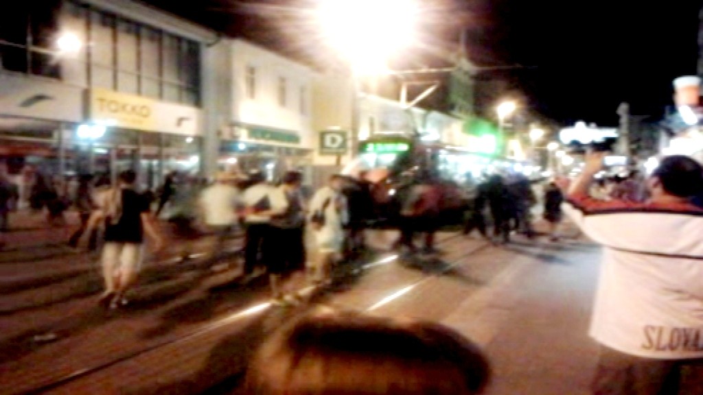 Tí sa totiž vrhali rovno pred električky na Obchodnej ulici v Bratislave okolo jedenástej hodiny večer. Tým nielenže blokovali dopravu, ale vraj tiež skákali po autách dispečingu. Na miesto muselo doraziť hneď niekoľko policajných hliadok a vyzbrojení samopalmi rozháňať oslavujúci dav.