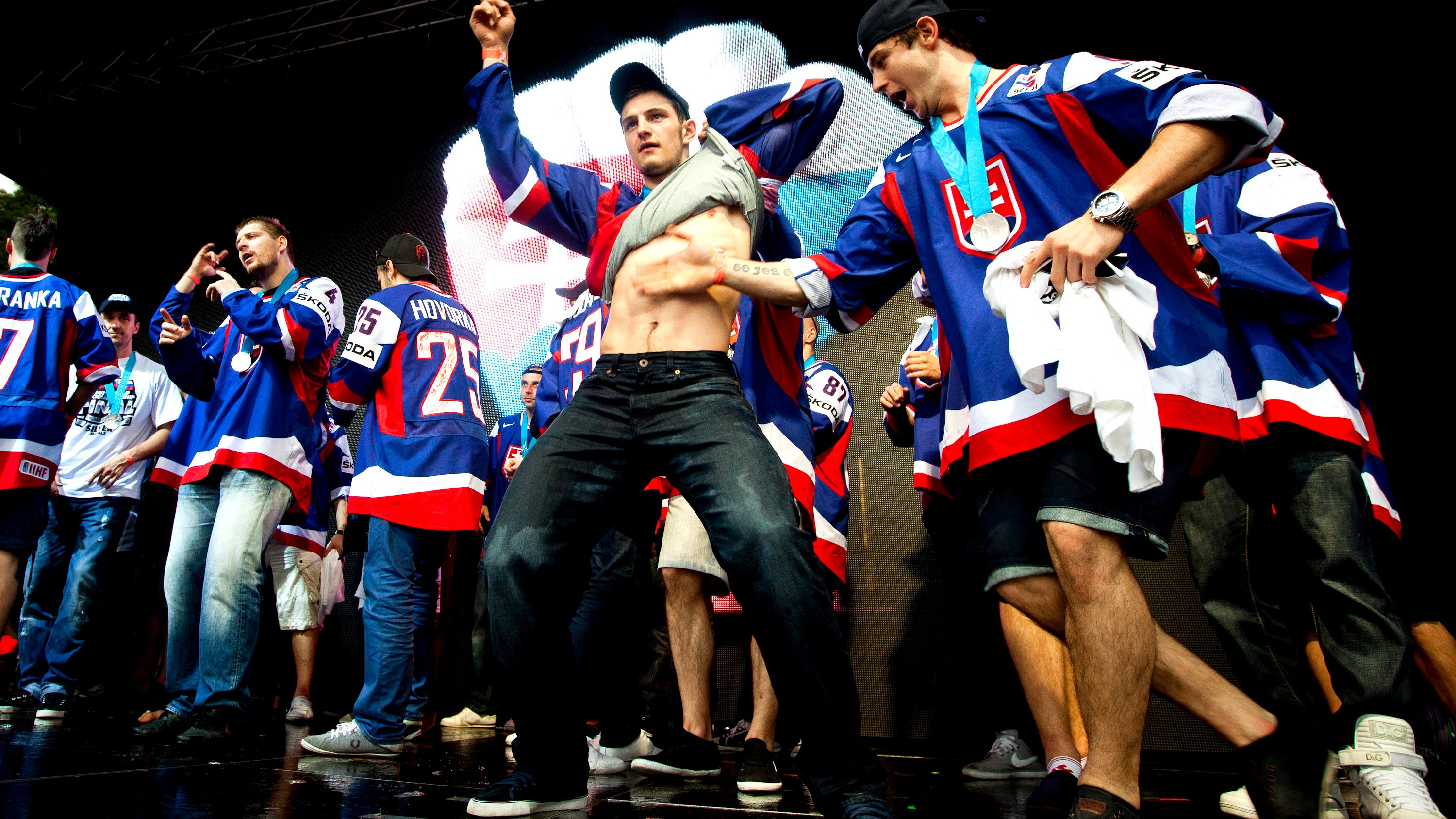 Libor s Tomášom boli vyhlásení za zabávačov šatne. A tak po finále, kedy po prehre naši hokejisti chvíľu smútili, atmosféru rozprúdili práve oni. "Po finále boli všetci takí skleslí, ale sme si s Tomášom zapli pesničku a ukázali sme im," spomína Libor Hudáček.