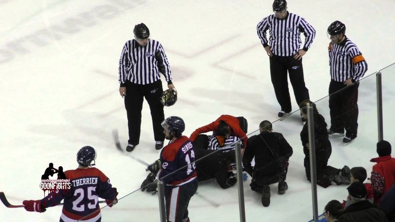 Jeden z hráčov ho totižto nechtiac zrazil na ľad, čoho výsledkom bol silný úder hlavy o ľad. Po nešťastnom zákroku zostal otrasený arbiter ležať na ľade v bezvedomí a museli ho ošetriť privolaní zdravotníci.