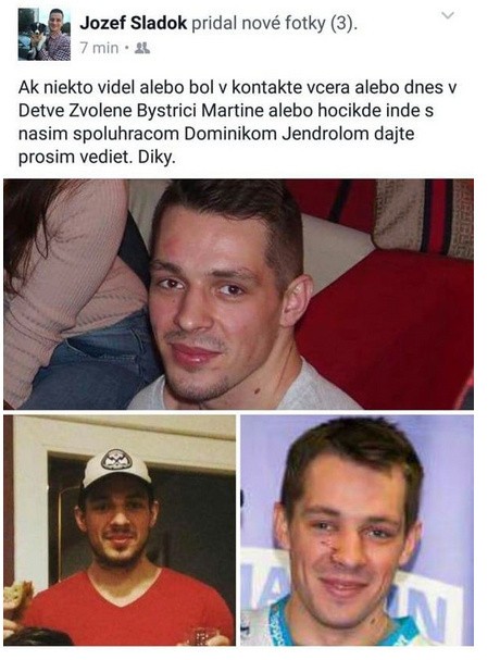 MARTIN / V utorok odohral zápas play out slovenskej hokejovej Tipsport ligy medzi Duklou Trenčín a HC 07 Detva, vo štvrtok išiel na diskotéku a doteraz o ňom nie sú žiadne informácie. Obranca Dominik Jendroľ (22) o sebe nedal vedieť a je nezvestný.