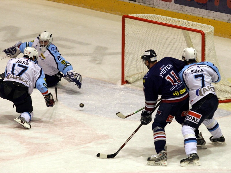 Domáci v 59. min využili už svoju štvrtú presilovku v stretnutí. Po Dlouhého strele puk J. Hudáček iba vyrazil a Paciga ho poslal za jeho chrbát. Päť sekúnd pred koncom mohol vsietiť čestný gól O. Ďuriš, no proti bola opäť žrď domácej svätyne.