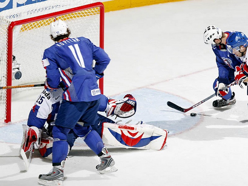 Slováci začali rozhodným tlakom a od začiatku bolo jasné, že nemienia súpera podceniť. Predsa len však bolo vidieť výrazný výkonnostný rozdiel medzi oboma tímami. Problémom nášho sa však ukázalo premieňanie gólových šancí. Našťastie nám v prvej tretine vyšla na MS celkovo štvrtá presilovka, v ktorej dal gól kapitán Róbert Petrovický. Lenže okrem neho už nikto v prvej tretine neskóroval, hoci príležitostí sme mali dosť. Našim „gólovým“ akciám však na celých majstrovstvách chýba myšlienka, je to väčšinou síce poctivé, ale predsa len „búšenie“ do súperovej bránky. Aj dnes proti Slovincom sme sa najmä usilovali, strieľali zo všetkých pozícií a spoliehali, že „niečo tam už padnúť musí“.
