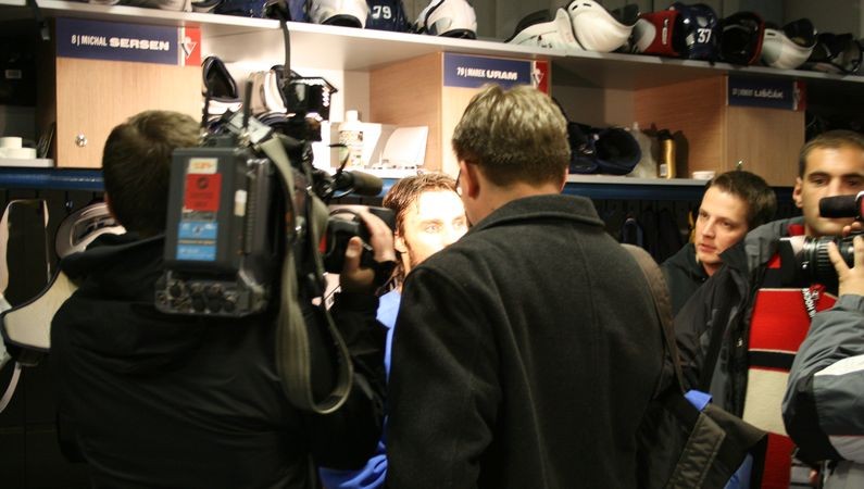 Slovan síce v tomto súboji nezískal potrebné body, ani vysoké prémie za víťazstvo 1,5 milióna Sk, ale fanúšika nesklamal a predviedol šiestim tisíckam divákov zaujímavé hokejové divadlo s pravou hokejovou eufóriou po góloch, šanciach i strkaniciach. Nakoniec sme uznali kvality súpera a teraz čaká prémia Vás. Fotogaléria zo zápasu a priamo z kabín oboch tímov od nášho fotografa Petra Trnovca.