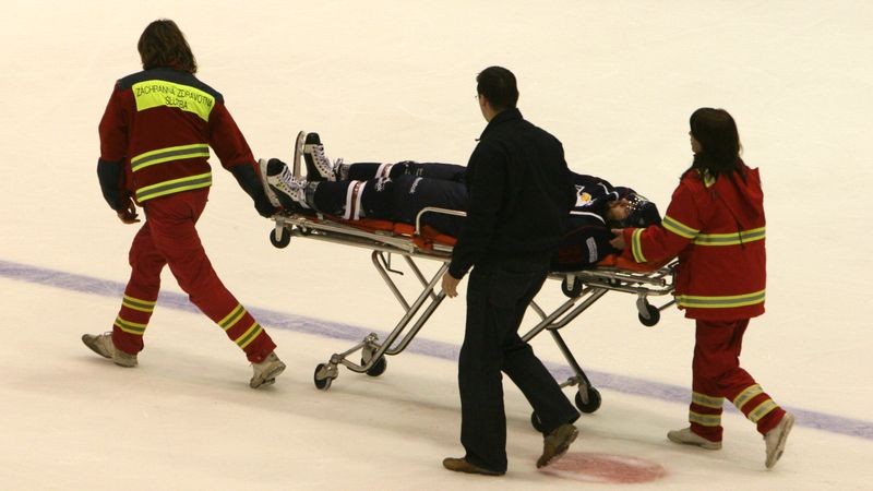 | Obranca Milan Hruška skončil po tvrdom súboji na nosidlách s podozrením na otras mozgu. |