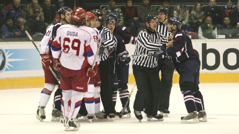 | Azda jediný náznak vážnejšej šarvátky. Miro Lažo tam chýbať nesmel, rovnako ani Radek Duda. |