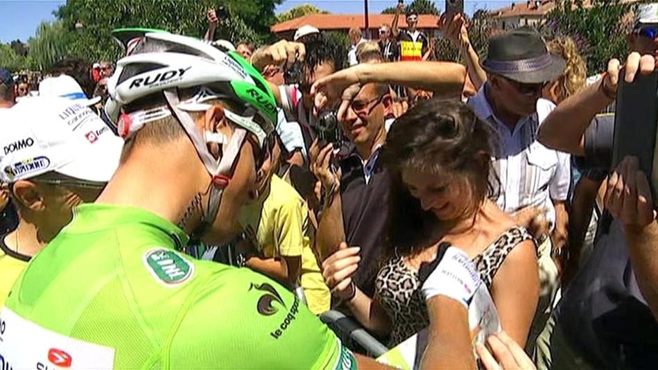 VIDEO: Sagan prijal výzvu. Podpísal sa na prsia fanúšičky
