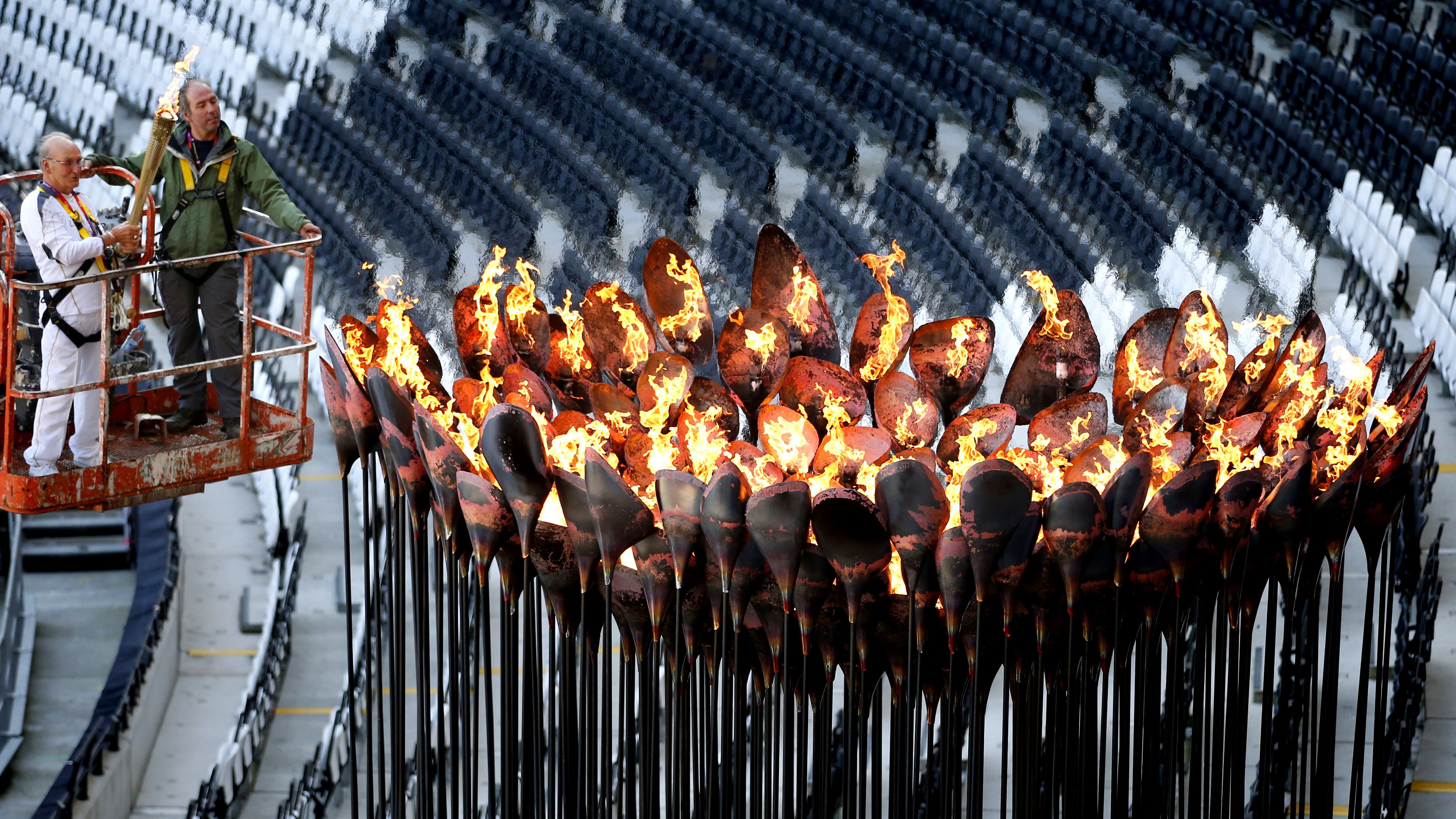Čaša s ohňom na Olympijskom štadióne v Londýne už nestojí uprostred plochy ako na otváracom ceremoniáli, ale na mieste neďaleko zvona, ktorým dal víťaz cyklistickej Tour de France Bradley Wiggins signál na začiatok programu.