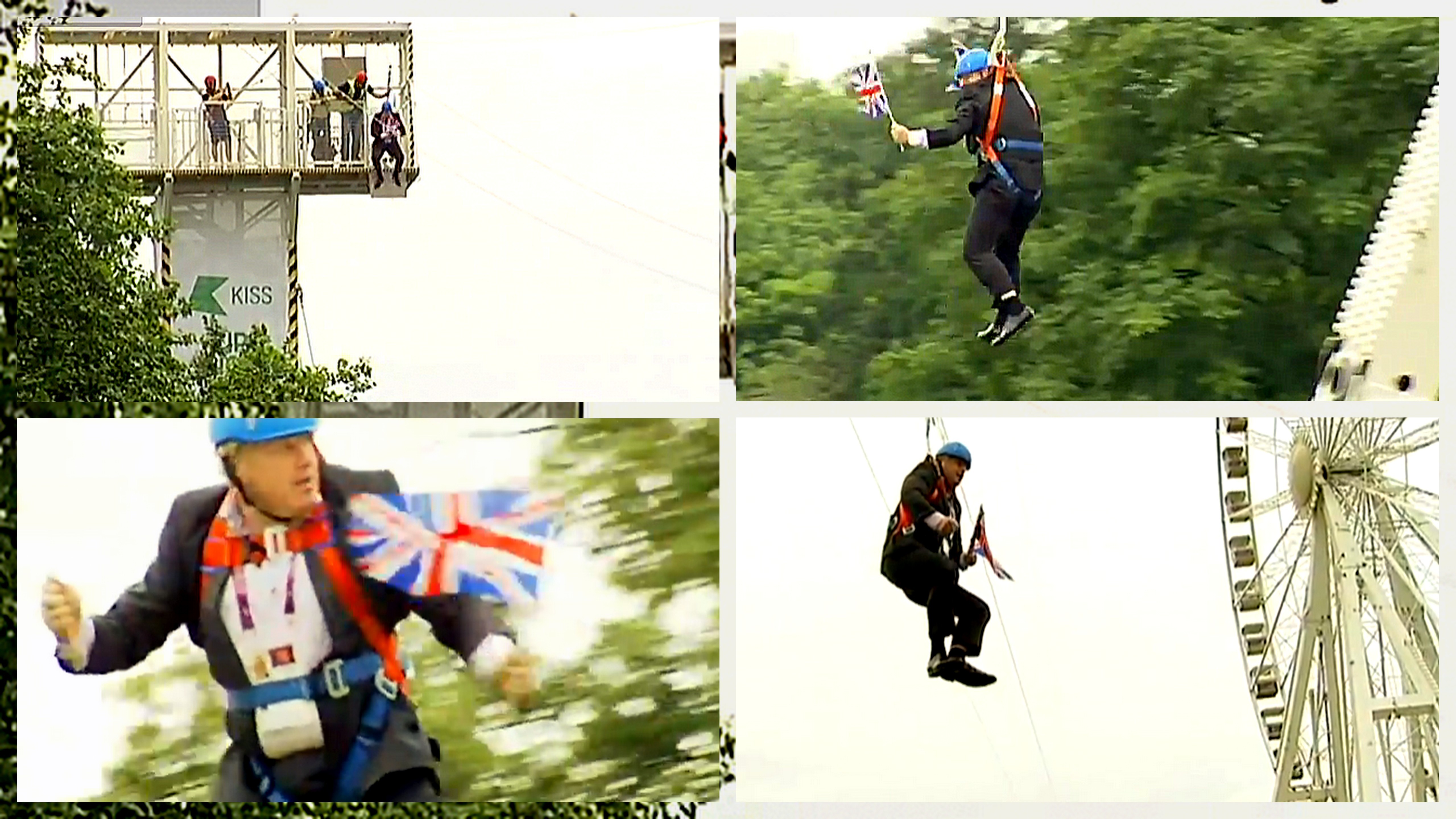 Excentrický starosta Londýna Boris Johnson, známy svojimi humornými výrokmi, pobavil Londýnčanov skôr svojím športovým vystúpením, pri ktorom ostal visieť v popruhoch nad hlavami ľudí v parku.