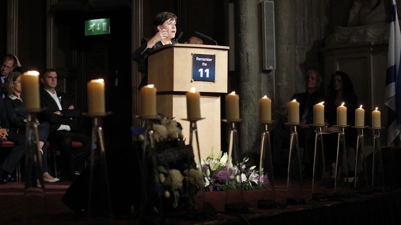 Vdova Ankie Spitzerová vyšla na pódium počas smútočného obradu za 11 izraelských športovcov, trénerov a predstaviteľov, ktorých pri útoku v olympijskej dedine v roku 1972 zabili palestínski teroristi z organizácie Čierny september. Spitzerová namierila pichľavé vyjadrenia proti prezidentovi MOV Jacquesovi Roggemu, ktorý mal na obrade príhovor len krátko pred ňou.