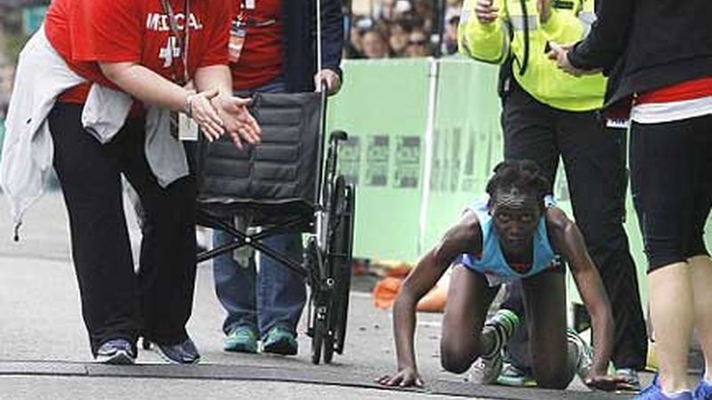 Päťdesiat metrov pred cieľom sa ale od vysilenia zrútila na chladnú zem a skolabovala. Usporiadatelia ju chceli postaviť na nohy, to ale nedovolila jej športová hrdosť a tak sa do cieľa s obrovskými problémami doplazila po štyroch. Aj keď nezískala víťazstvo, nielen pre divákov bola naospevovanejšou bežkyňou marótonu v Austine práve ona!