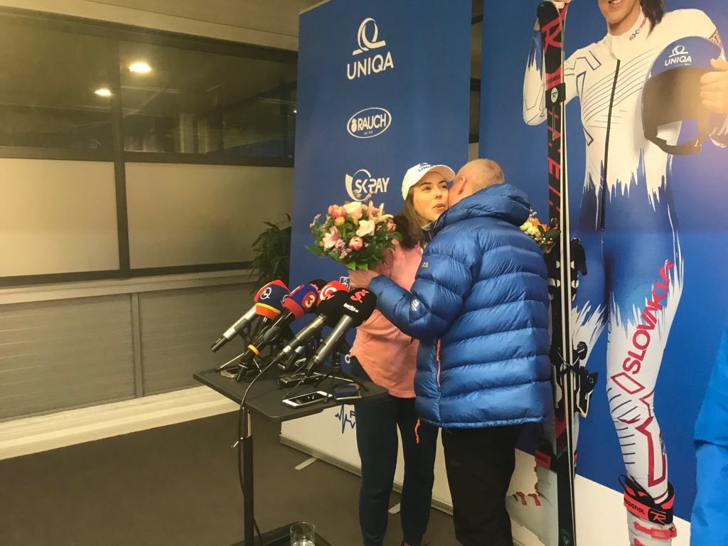 Na Petru čakalo množstvo novinárov. Rozobrala majstrovstvá sveta a aj vypadnutie v paralelnom slalome v Štokholme. "Pri tom skoku som bola veľmi vzadu, čím mi nohy vyleteli do vzduchu. Ešte som myslela, že z toho vykľučkujem a zvládnem to, ale potom mi úplne vystrelili lyže. Urobila som chybu, ale taký je šport. Hnevá ma, že som urobila chybu, pretože do každých pretekov idem naplno. Nič sa nedá robiť. Keď riskujem, stávajú sa aj chyby. A dnes som urobila veľkú.Budem sa snažiť pripraviť čo najlepšie na záverečné súťaže v sezóne," povedala Vlhová.