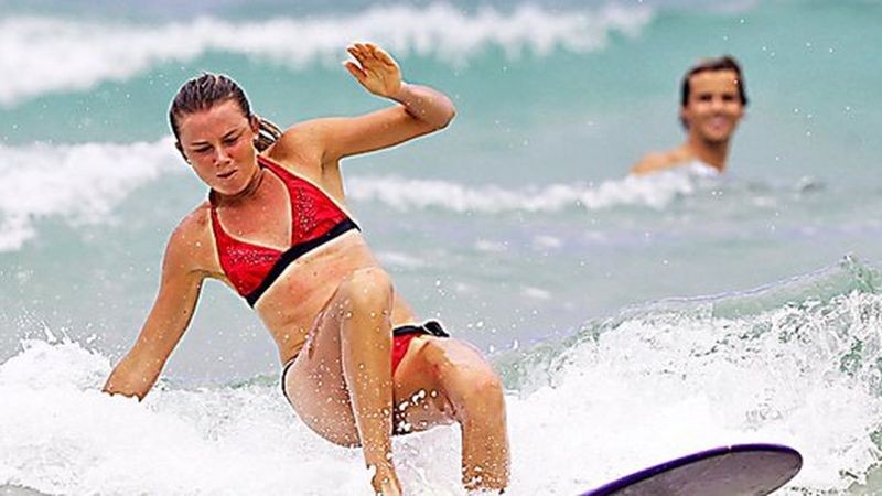 Fotografie z pláže ponúkla prostredníctvom svojho konta na Facebooku a k jednému zo záberov podotkla: "Mimo vody to bolo v poriadku." V ďalšom komentári uviedla: "Bola to veľká zábava. Nemohla som si želať lepšieho učiteľa, než bol Julian."