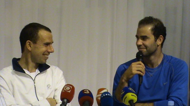 Sampras sa na superrýchlom taraflexe cítil ako ryba vo vode. Víťaz štrnástich grandslamových turnajov potvrdzoval, že nie nadarmo mu prischla prezývka "Pistol Pete" a najmä v prvom sete súkal jedno eso za druhým, okrem bleskurýchleho podania predviedol aj plejádu učebnicových volejov. Hrbatý sa zasa činil pri dlhších výmenách od základnej čiary a tak fanúšikovia bieleho športu si prišli na svoje.